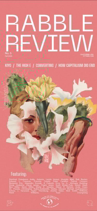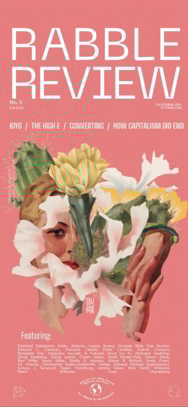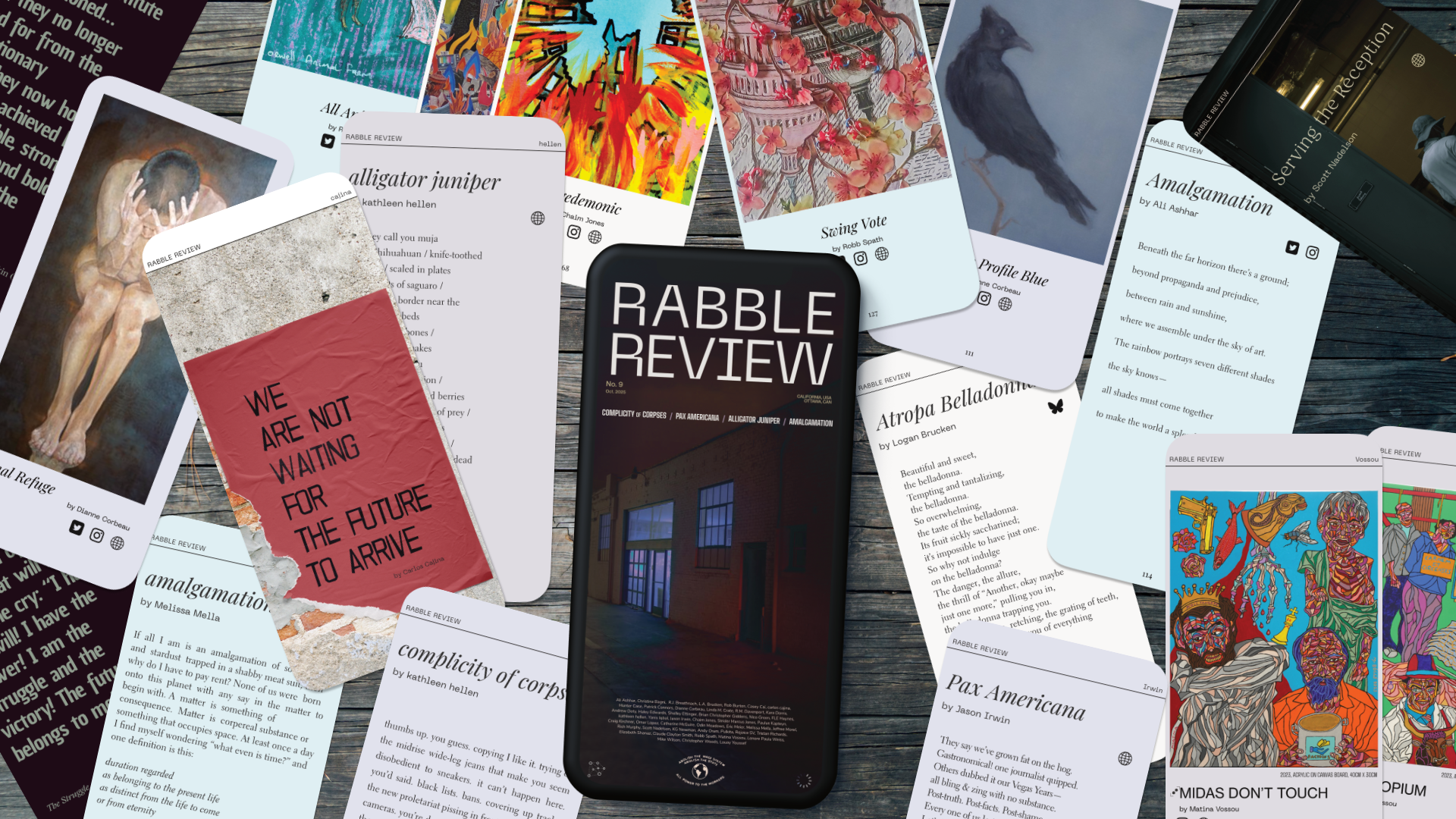 The RABBLE REVIEW team met on November 9th for our third ever livestream. The entire stream lasted two hours, with readings from contributors of the latest issue of RABBLE REVIEW. Discussion on RR No.9 followed after, along with a quick walk through of the new site and brief chatter about what is planned for Issue No.10 and beyond.