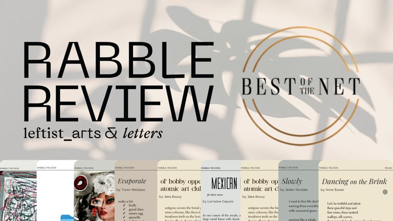 Congratulations to our nominees! All of the nominees have their work featured in RABBLE REVIEW No.8. We'll link to all of their pieces below.