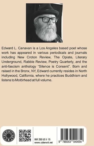 Edward L. Canavan is a Los Angeles based poet whose work has appeared in various periodicals and journals including New Croton Review, The Opiate, Literary Underground, Rabble Review, Poetry Quarterly, and the anti-fascism anthology "Silence is Consent". Born and raised in the Bronx, NY, Edward currently resides in North Hollywood, California, where he practices Buddhism and listens to Motörhead at full volume.